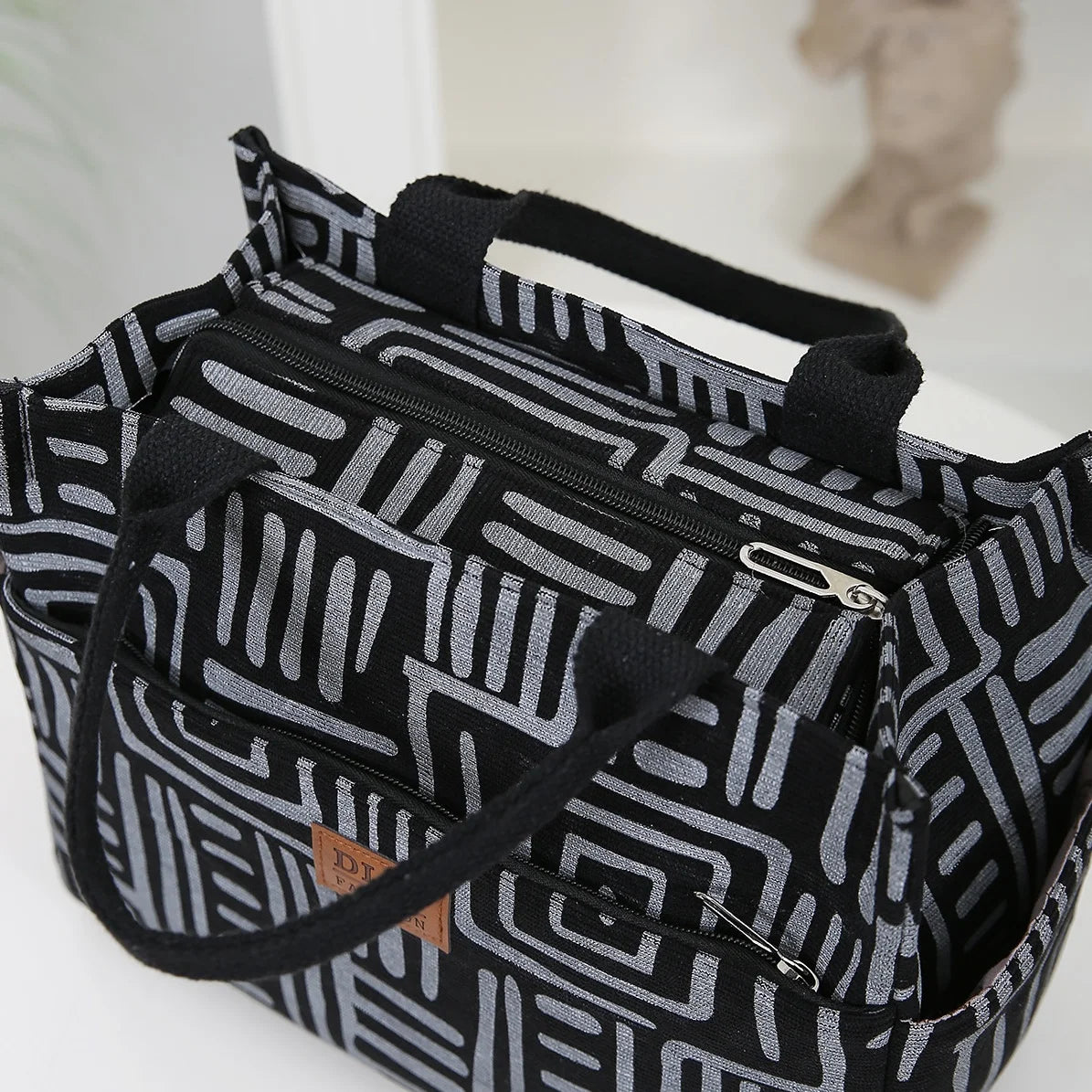 Pensé pour celles qui veulent emporter leur déjeuner sans compromis entre style et efficacité, ce sac lunch isotherme motif graphique s’intègre naturellement à votre quotidien : bureau, déplacements, courses rapides ou pause déjeuner en extérieur.